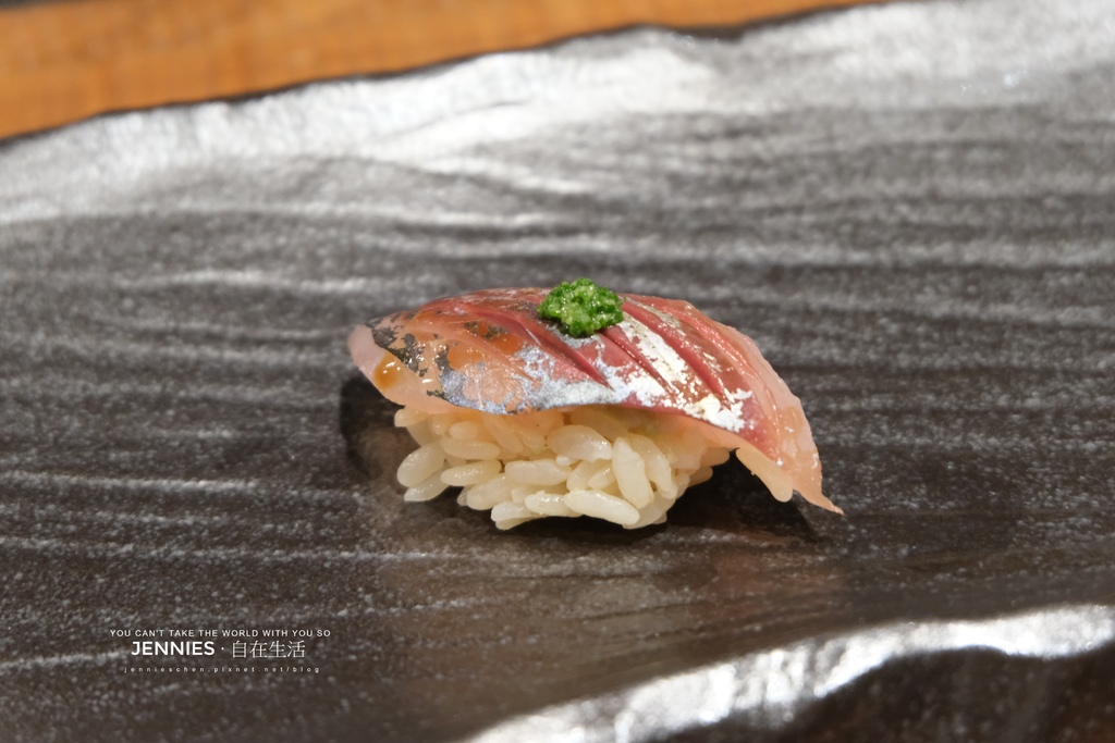 來自兵庫的竹莢魚是日料中最講究鮮度與刀工的魚種之一,魚肉晶瑩剔透脂香潤口,切面細緻如絹,肉質緊緻有彈性,隨著入口慢慢咀嚼,一股天然的鮮味慢慢出現,收尾乾淨非常好吃!兵庫海流湍急,這也造就了這類竹莢魚肉質緊實而富含油脂的特性。