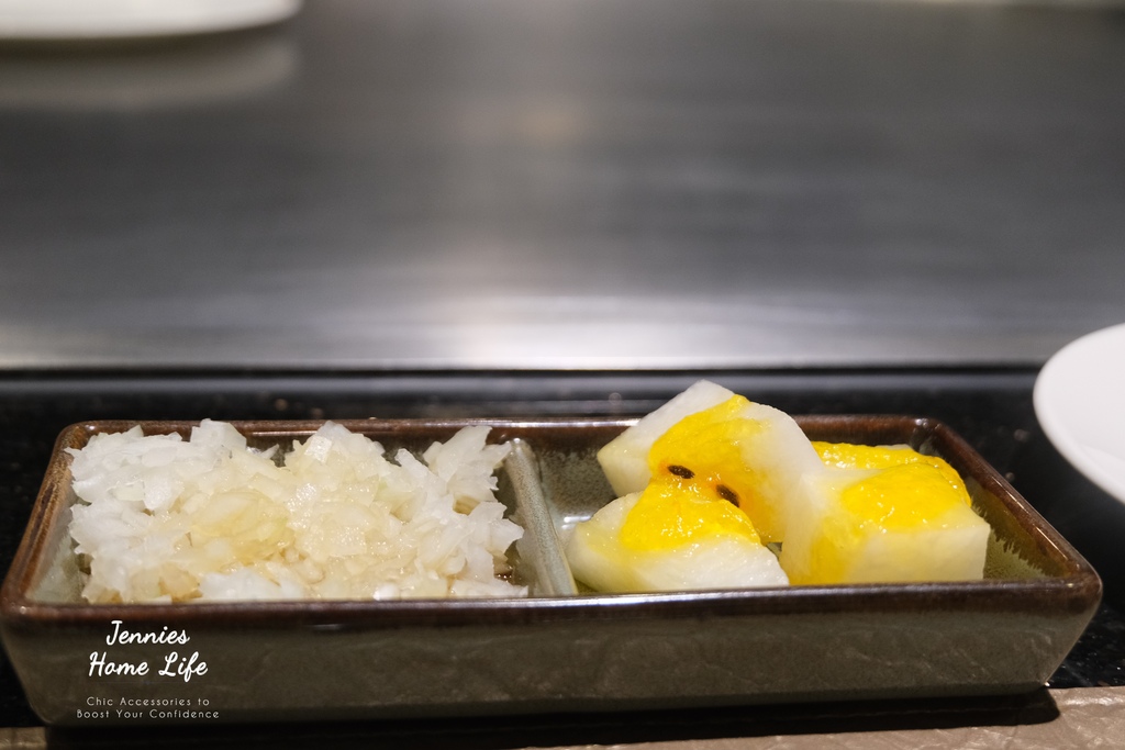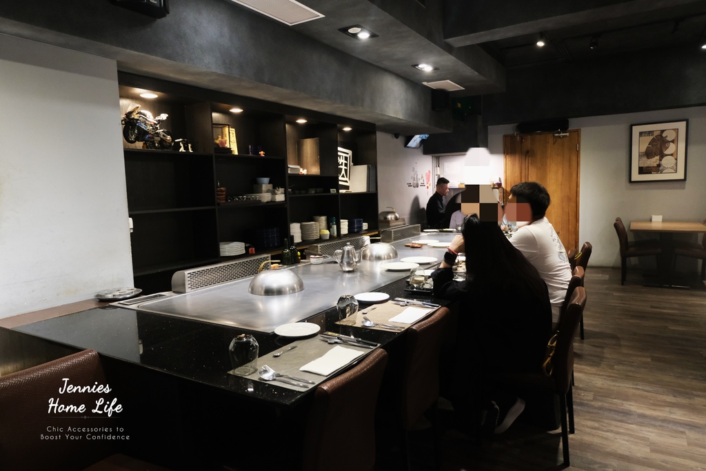 餐廳空間不大,目測可容納約10-15個坐位數。用餐前鐵板這邊的坐位已經擺好餐具。店內的氛圍簡單溫馨,開放式的鐵板料理台更能讓顧客近距離欣賞廚師料理的過程,也能拉近彼此的距離。