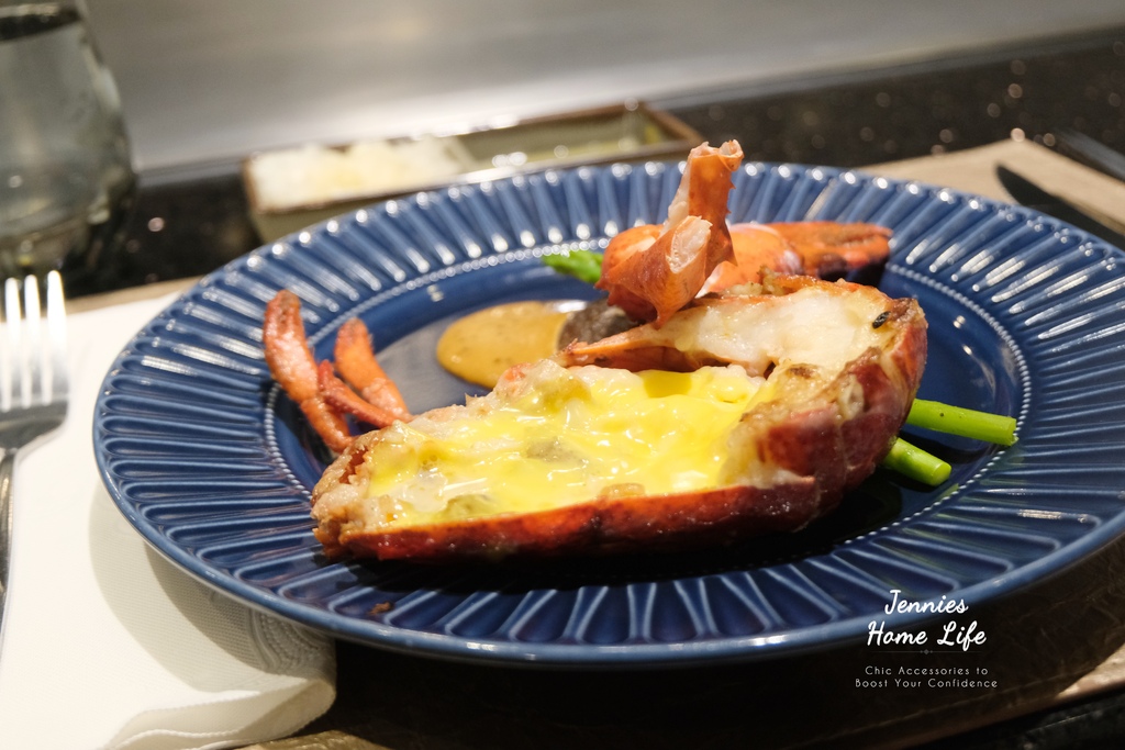 餐點均為現點現做,妹妹推薦平日來的時候點商業午餐就可以吃的很飽足,這天我們三個全部都點了「波士頓龍蝦套餐」。其它還有明蝦超值海陸套餐價格從NT1980-NT2980元不等(看主餐的費用)這裡有日本佐賀和牛A5、美國極黑老饕牛排、日本頂級和牛沙朗、澳洲菲力牛排及現流海鮮等,比起高檔價位的鐵板餐廳算是經濟實惠,而且方便聊天