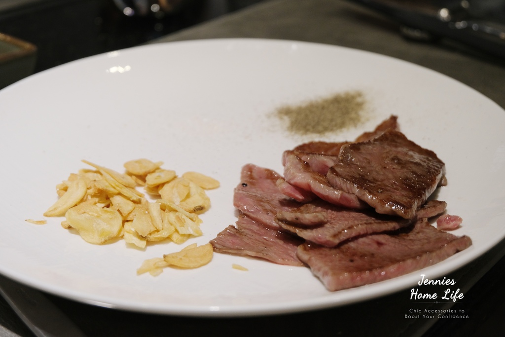 妹妹升級的和牛,師傅切成薄薄的一片很方便入口,搭配碎洋蔥、蒜片或是鹽巴都非常好吃,牛肉吃起來油香肉甜,幸福感瞬間飆升。