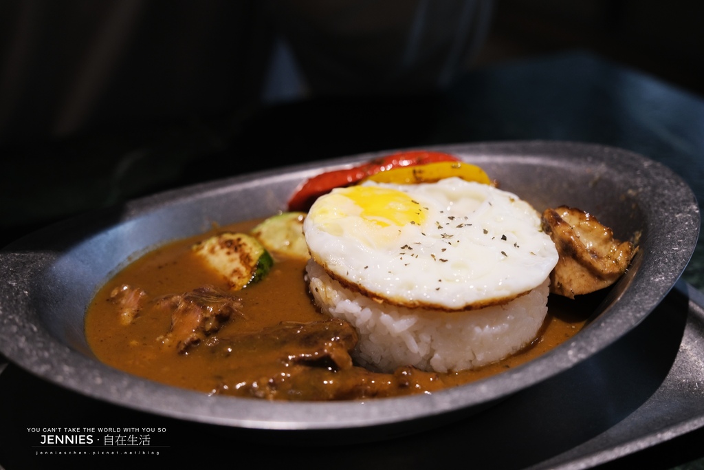 這道絕對是小朋友的最愛!!漢堡肉以炸的方式再加上湯咖哩,湯咖哩起源於日本北海道,與一般濃稠的咖哩不同,吃起來較為清爽香料層次豐富,帶著溫潤而細膩的風味。外酥內軟的炸漢堡排肉吸附著咖哩湯汁降低肉脂油膩,內餡多汁,一口咬下去香氣四溢,實在好吃!搭配甜椒、茄子、紅蘿蔔等蔬食,這一餐吃的好滿足呢!!