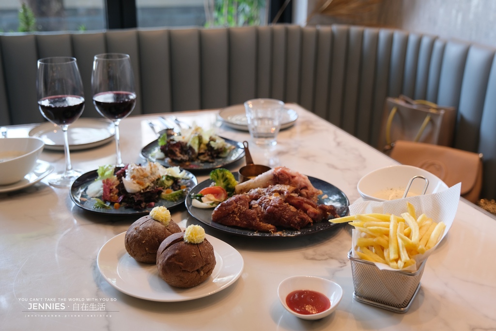 餐廳提供主餐、佐餐炸物及飲品、酒類選擇,也有套餐及單點。可升級加價190元及280元的套餐,190元包含:麵包、湯、甜點及飲料;280元包含:麵包、沙拉、湯、甜點、飲料及一份薯條。更棒的是如果同行用餐者都選擇280元的加價套餐還可以享有薯條無限續加。
