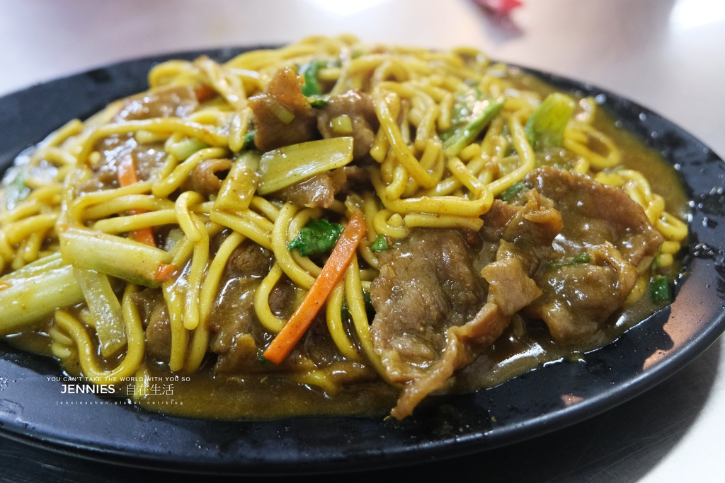 今天點了牛肉炒麵及豬肝炒麵,IG上面介紹說一定要跟店家說加咖哩及沙茶,我們二樣都加了!另外又點了一盤空心菜。咖哩炒麵上桌時真的很香,對了!麵條也可以選擇,另外還有烏龍、年糕及米粉可以選,我們選了油麵。