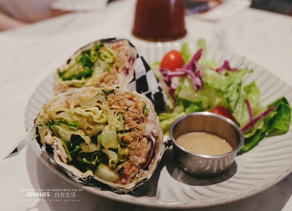 ▲燉手撕豬肉辣蛋黃醬的墨西哥捲餅(原味)光是名字就已經讓人食指大動,這道是妹妹點的燉手撕豬肉辣蛋黃醬的墨西哥捲餅(原味)內餡飽滿搭配各種蔬菜,如果想要吃更多的綠色蔬菜直接選沙拉部分,這一盤就可以吃到滿滿的蔬食,搭配手撕豬肉口感濕潤,加上辣蛋黃醬讓整體層次更加分明,新鮮蔬菜給的很大方!咬下去一瞬間就能感受到那種有用心的誠意。好喜歡墨西哥的餅皮!我跟妹妹的墨西哥捲餅都選「對切」然後交換吃看看。這家店採用掃碼點餐,介面非常人性化,不只是「點餐」根本是「客製化設計」。