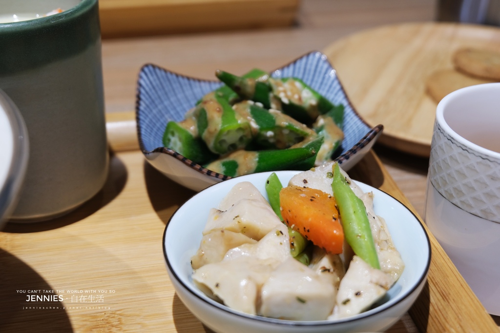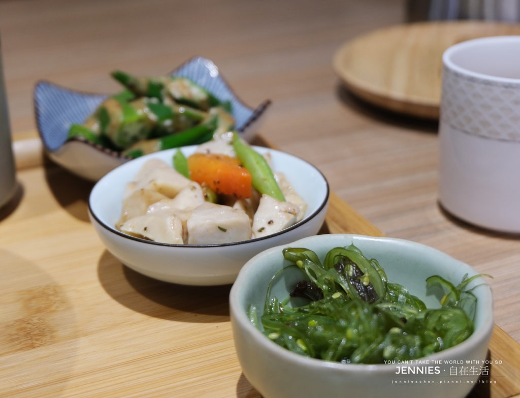 小菜精緻有巧思絲毫不馬虎,胡麻秋葵、和風杏鮑菇、海帶芽輪番上陣,為整體風味增添層次。