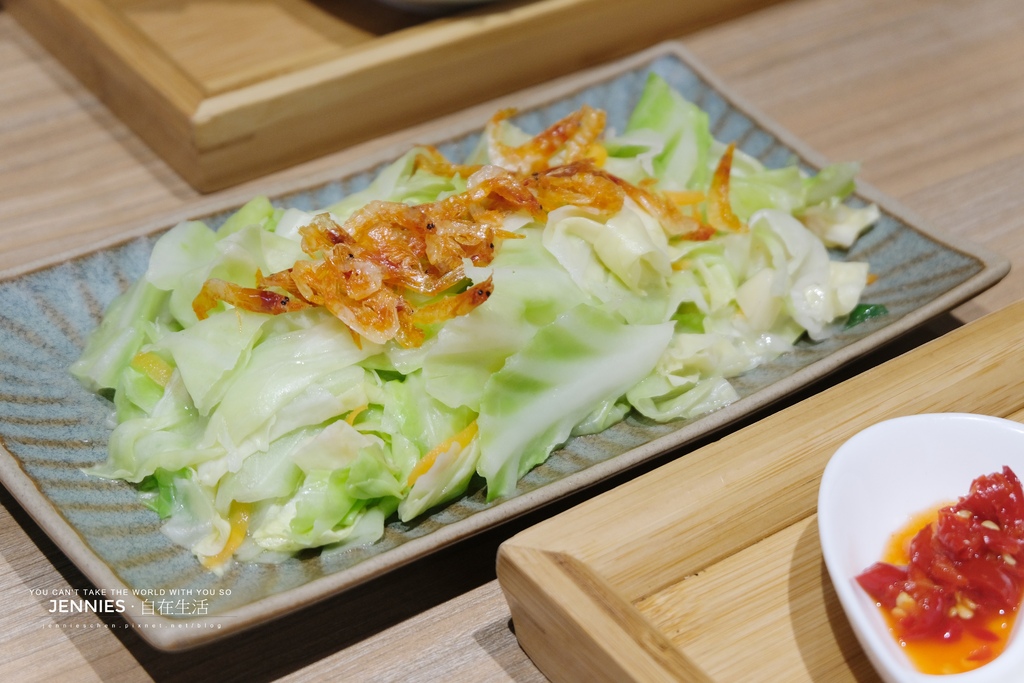 忍不住又加點了一盤櫻花蝦炒高麗菜,果然沒讓人失望。高麗菜爽脆清甜,火候拿捏得宜,不油不膩,入口滿是自然蔬甜;撒在上頭的櫻花蝦微微焦香,為整道菜增添一抹鮮味層次。這樣簡單卻富有溫度的家常料理,總能喚起味蕾最純粹的滿足感。一邊夾著高麗菜、一邊喝著湯、吃著米粉,心也被這份「剛剛好」的樸實味道安撫了。