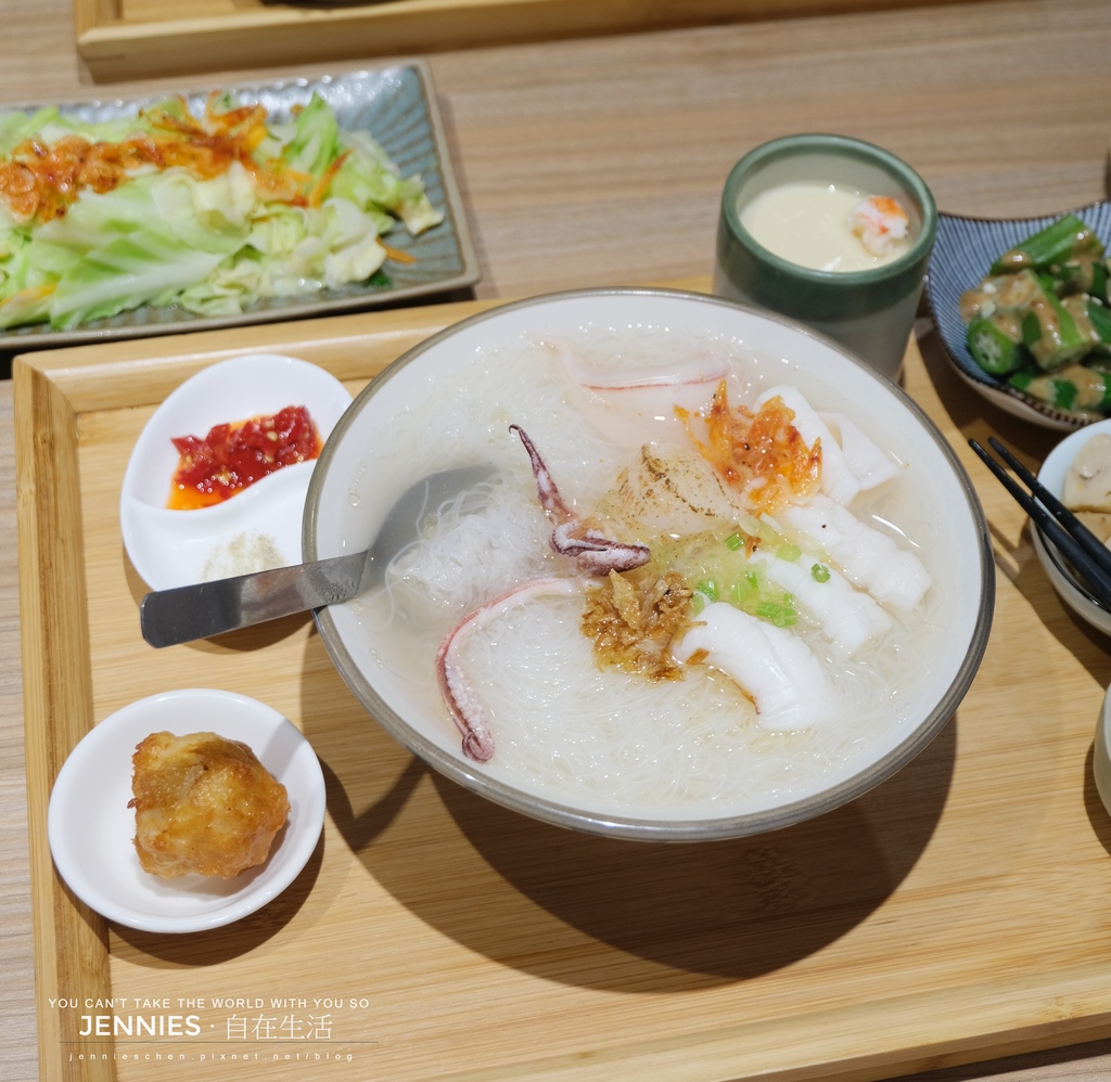 胡麻醬香濃郁卻不搶味,秋葵滑嫩;杏鮑菇吃起來脆彈,咬下還有淡淡清香;海帶芽則清新解膩,恰好平衡米粉湯的濃郁。一邊吃著透抽米粉,一邊夾些小菜,味蕾像在做一場小旅行,簡單卻令人印象深刻,成了這一餐裡意外的小亮點。
