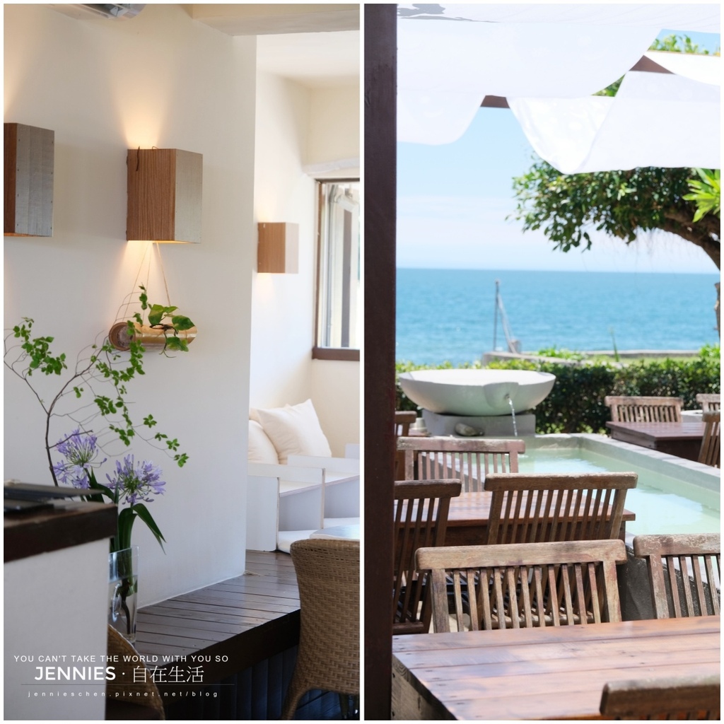 餐廳分有三個區域:室內、白色布幔戶外區、另一個則是有加遮陽板的座位區,此外也有貼心設置了沖腳區,如果想來這邊玩水,很推薦這家餐廳!