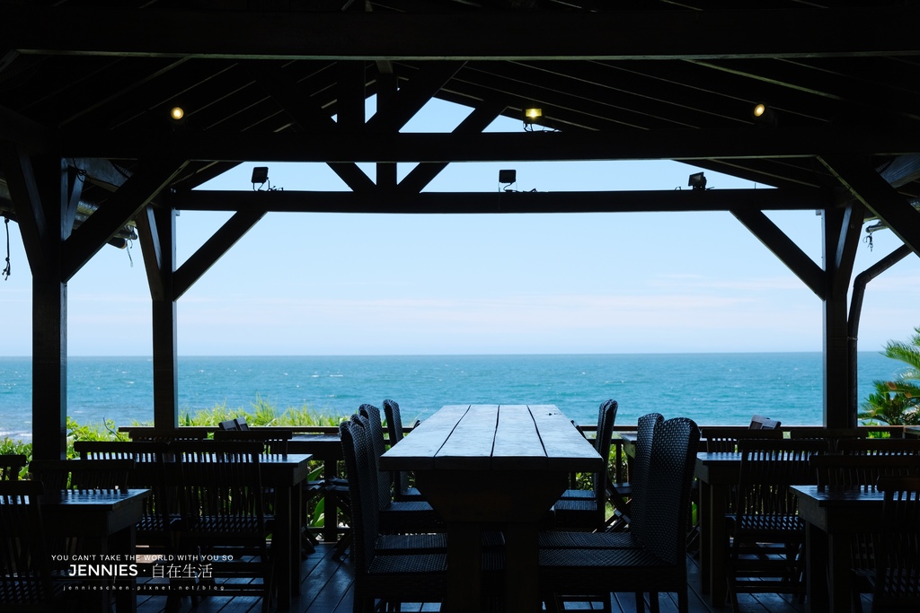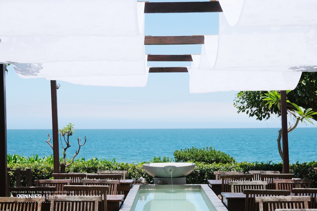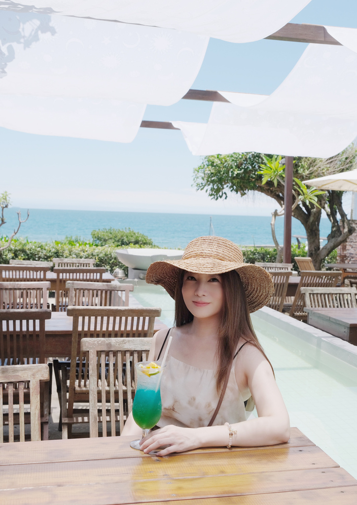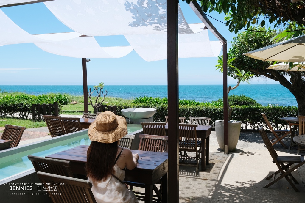 白色布幔隨著海風搖曳,看著海平面緩緩與天色交融,心裡也跟著慢了下來。海風很舒服讓人短暫忘卻了煩憂。