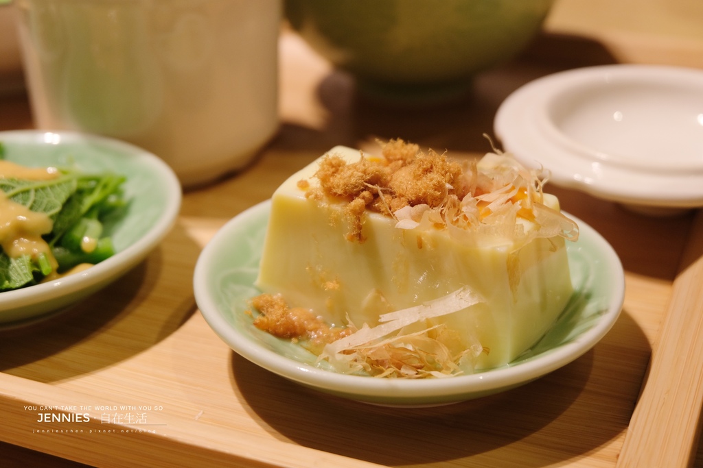 配菜方面也毫不馬虎!滑嫩雞蛋豆腐搭配柴魚與特製醬汁,入口清爽彈嫩。大家都很喜歡這道小菜!