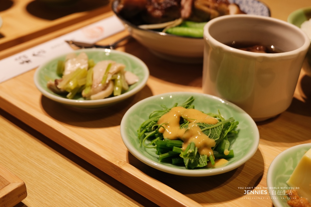 龍鬚菜佐胡麻醬,是我個人很喜歡的組合,保留蔬菜的清脆又多了胡麻香氣的點綴。而菇類拌芹菜,簡單清爽,也相當好吃。