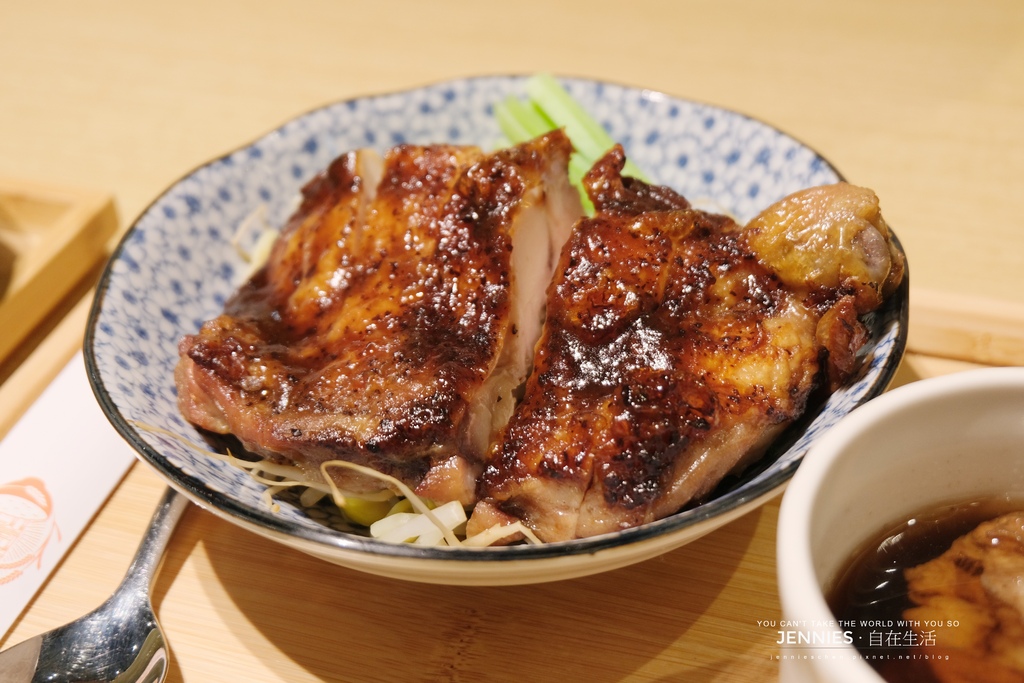 這道黑棗醬烤雞選用去骨雞腿肉,先以特調醬料醃漬入味再經慢火細烤,外皮酥香肉質細嫩多汁。