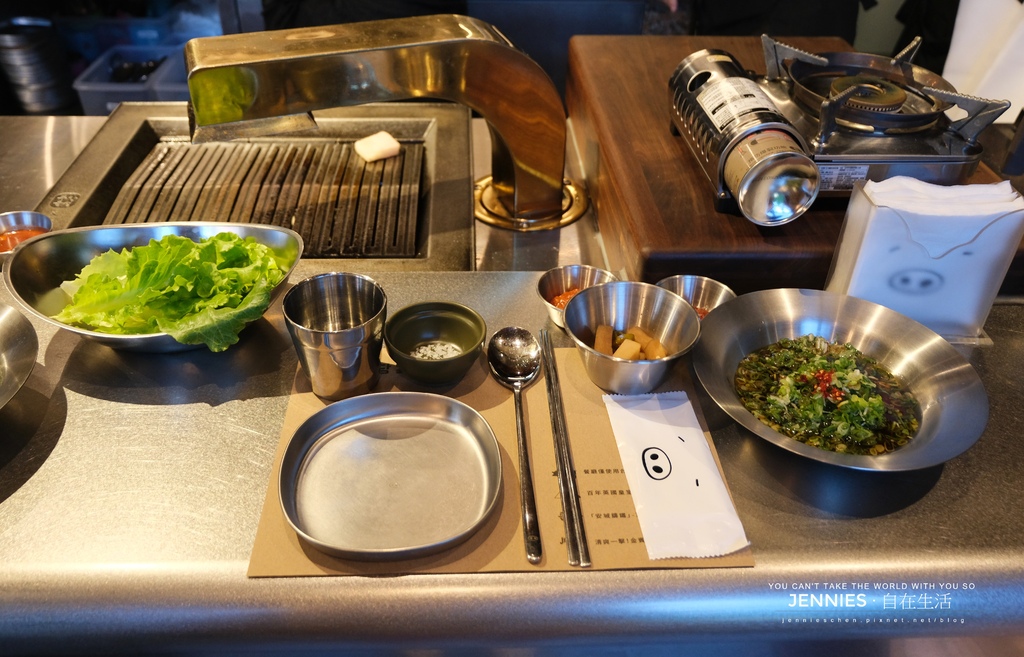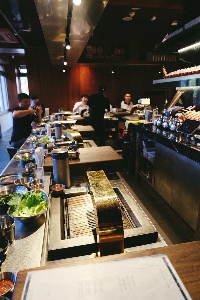 店內使用的器皿與醬料幾乎全數從韓國直送,從金屬扁筷、長柄匙,到盛裝沾醬的碟碗都是原汁原味的韓式餐桌風景。烤盤則是嚴選韓國百年工藝出品的「安城鑄鐵」全手工打造,可以保溫導熱,還會幫你把多餘的油脂通通退散!