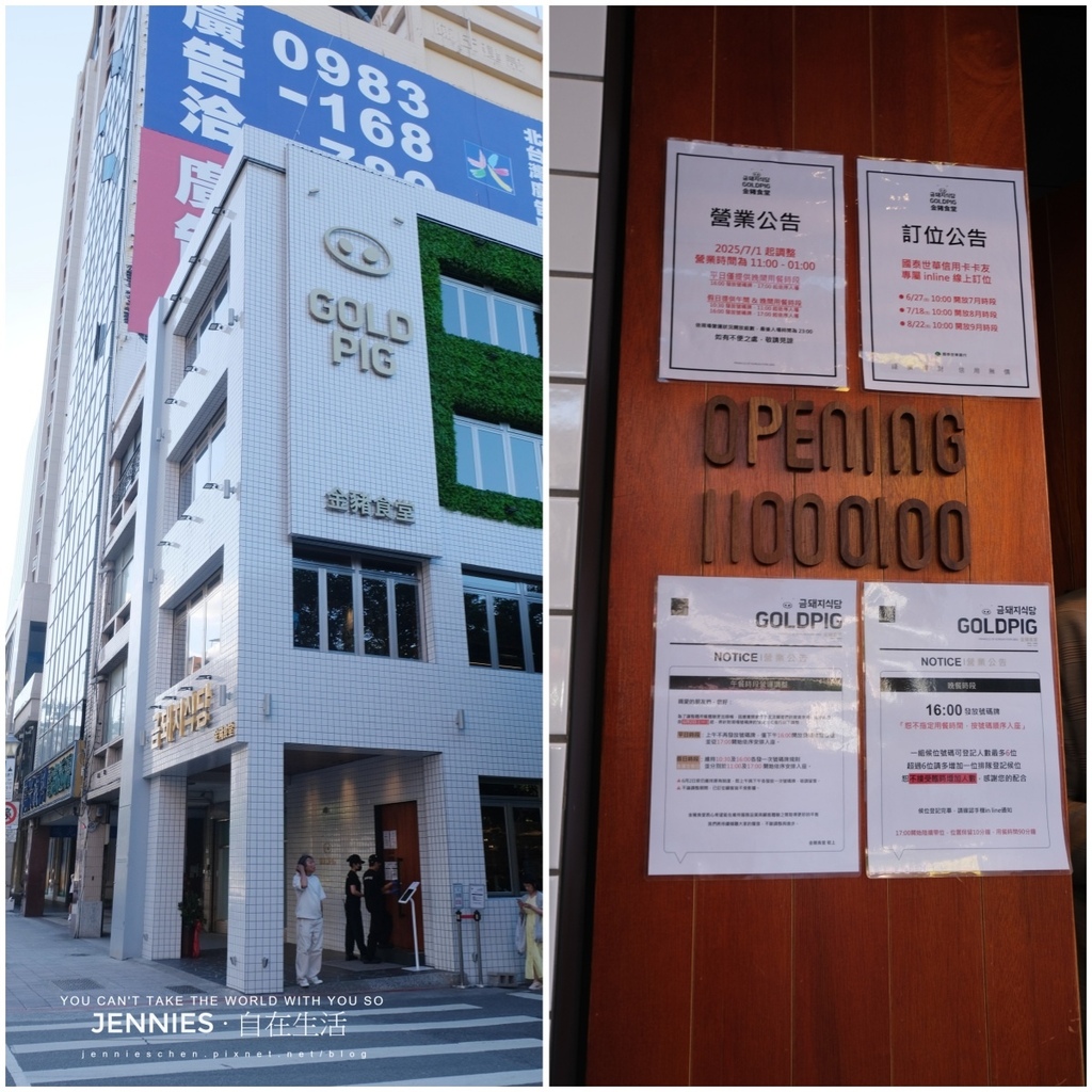 當天抵達餐廳時門口已經有不少人在等待,看起來幾乎都是事先預約的食客。不同於其他熱門餐廳的長隊伍,金豬食堂採每日限量號碼牌制度:現場候位的名額極為有限,一組號碼牌最多可登記六人,若超過人數,就得重新加入隊伍再取號。現場不接受臨時加人,且預約保留時間只有10分鐘,用餐時間限制則為90分鐘。
