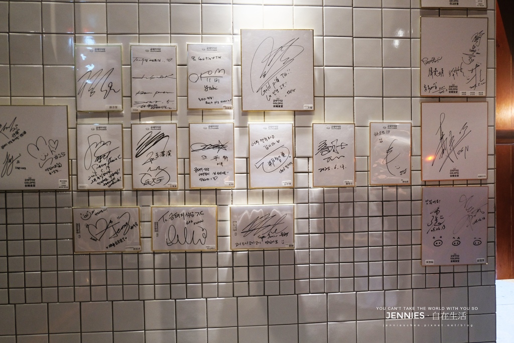 順著樓梯往二樓用餐區時看到「名人簽名牆」。從韓國人氣偶像到台灣演藝圈名人、影劇製作人,每一張簽名都是這間燒肉店在韓國的地位見證。簽名牆氣場全開,讓迷妹們心跳加速!