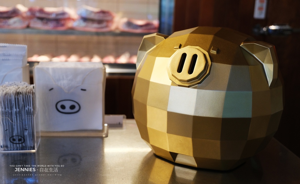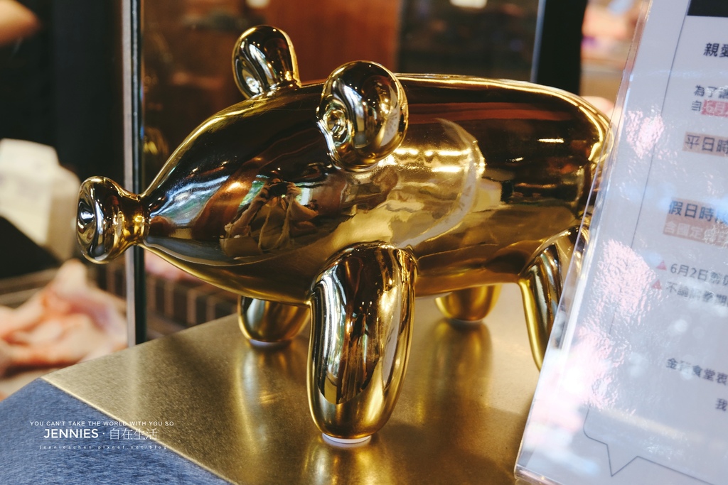 櫃檯上可愛的金色小豬雕像,宛如守門神般閃閃發亮,也成為顧客們入場前的打卡亮點。
