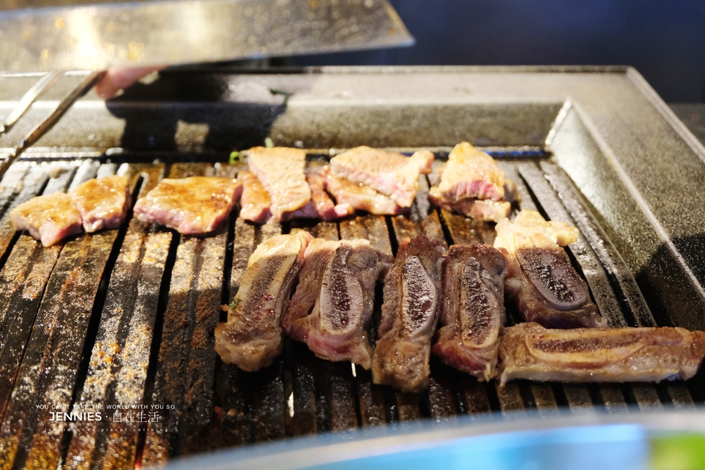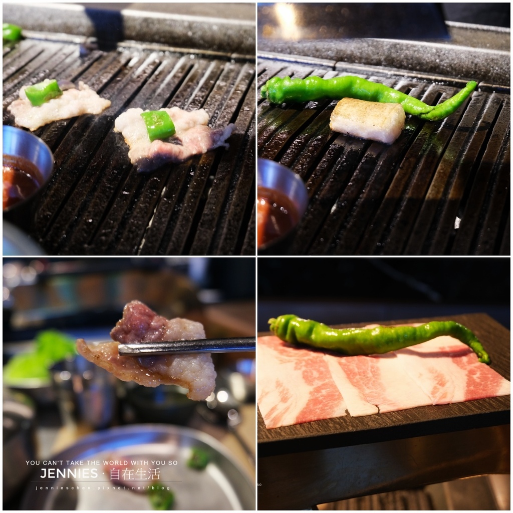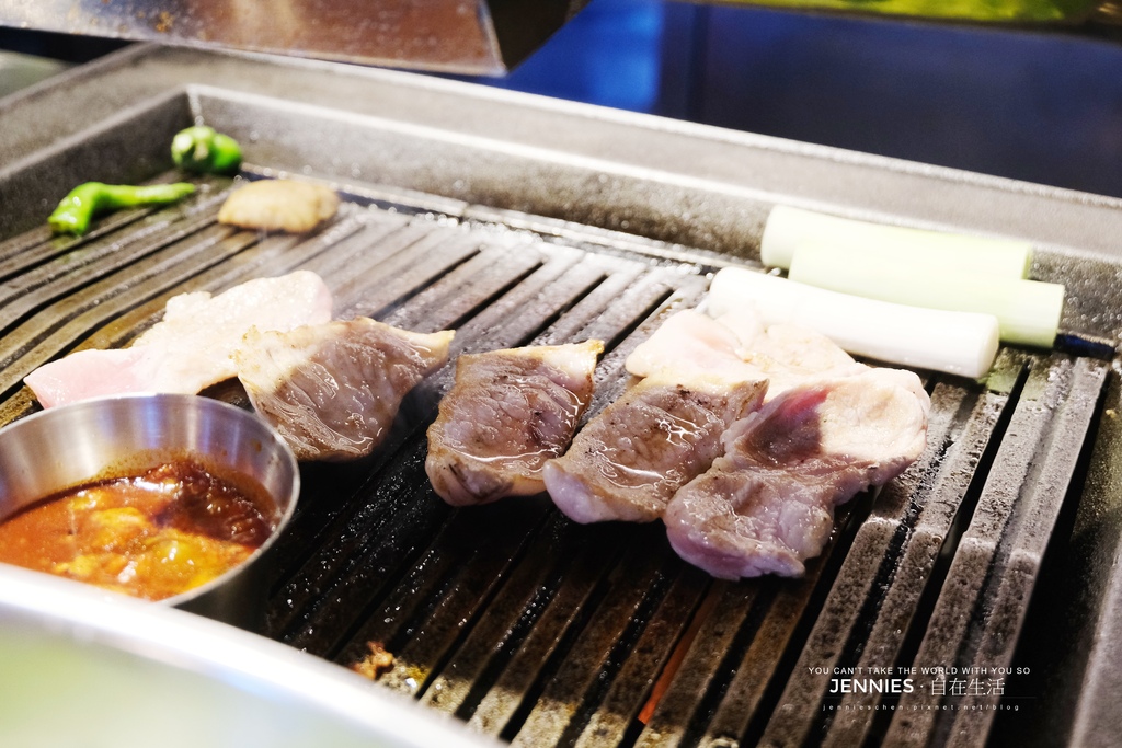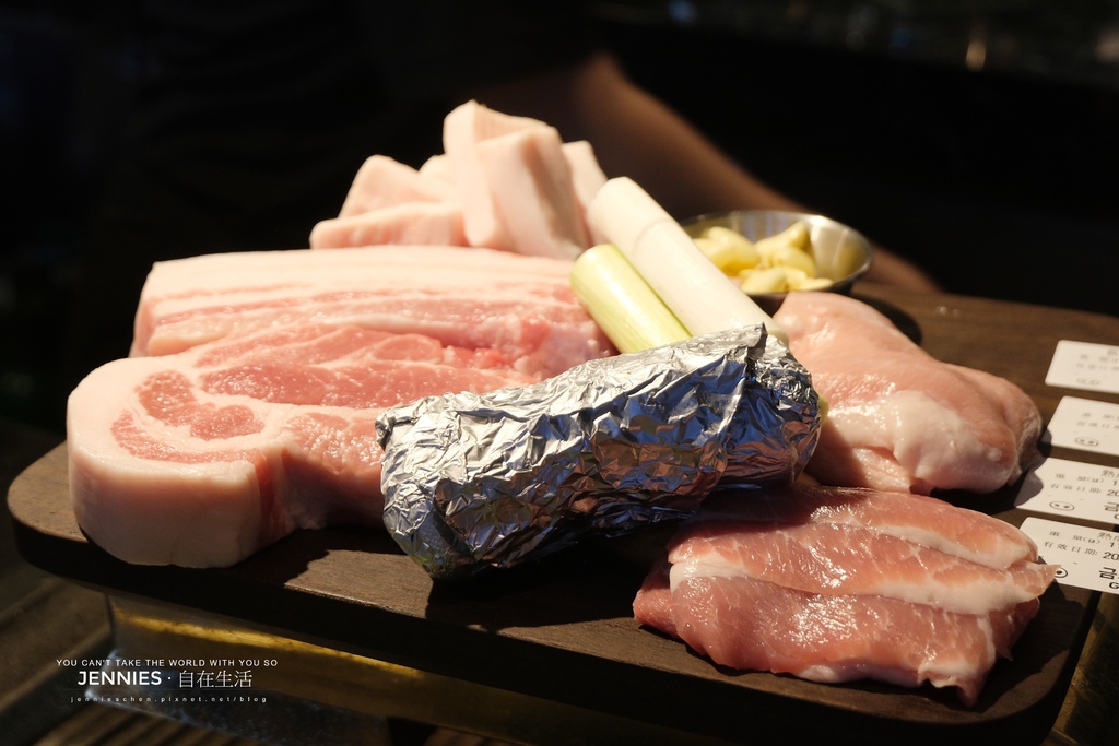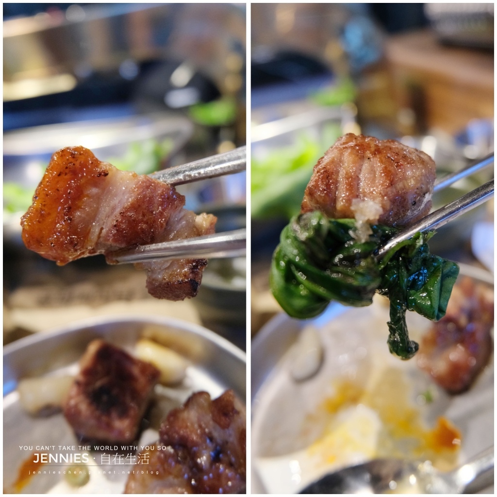 全程桌邊代烤,畢竟好的肉質還是要有專業人士烤才能烤出豬肉最佳口感,現場不斷用一小塊豬皮來回在烤盤上擦拭讓烤盤保持最佳滑潤狀態,肉一上去,滋~的一聲肉汁直接被原地封印!