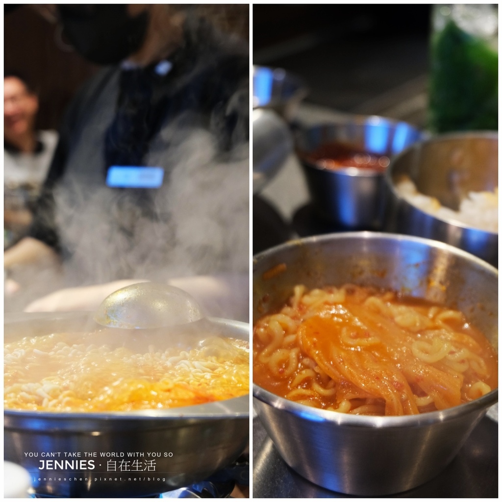 最後店員會貼心再添上一輪高湯,放入農心韓國拉麵,Q彈麵條吸飽湯汁這樣的結尾才對味。