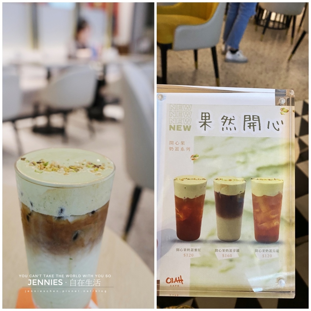 下午在這裡看到有三種開心果特調,說什麼也要來一杯啊!!在 OLAH悅樂旅店裡,不只有視覺美學更藏著讓人會心一笑的飲品設計。我點了一杯店內全新推出的「開心果奶蓋拿鐵」。這杯喝起來不只是色彩有層次,口感更是有戲劇性!!上層是濃郁開心果奶蓋,灑滿香氣十足的堅果碎,入口滑順又帶微鹹;中段是厚厚的咖啡體,與下層的鮮奶交融得恰到好處,實在太好喝。推薦入房後要下來點一杯才滿足!!