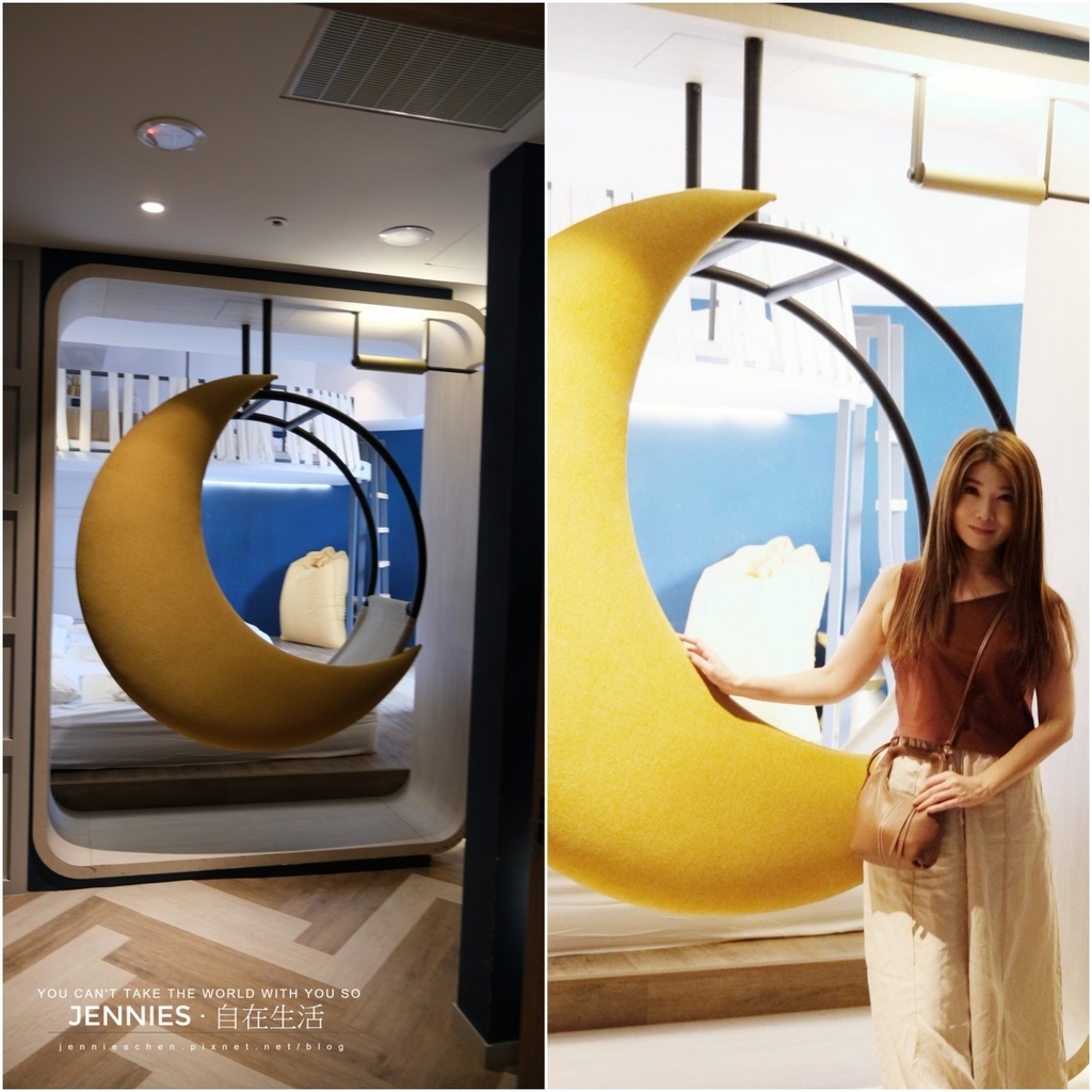 打開房間,看見一輪明月掛著(這也太可愛了吧!!)像是把童年的虛構想像轉化成真實的場景。這次入住的是歡樂四人房-
