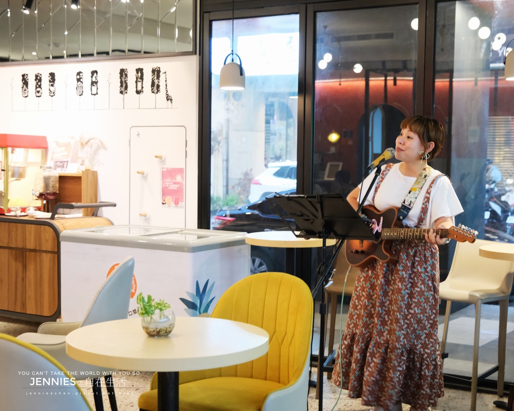 夜幕低垂時旅店也有它的「微醺時段」週六晚上六點至七點,悅樂旅店邀請現場駐唱,從7/1至9/30這段期間,音樂成為暑假旅人的禮物。像我入住這天,就在大廳聽見
