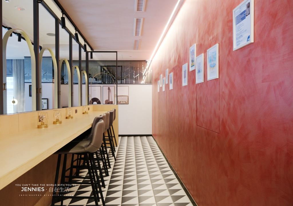 眼尖的旅人會發現—牆面上的音符、燈具設計、甚至浴室門的彩色玻璃,彷彿是某場小型音樂劇裡的場景。