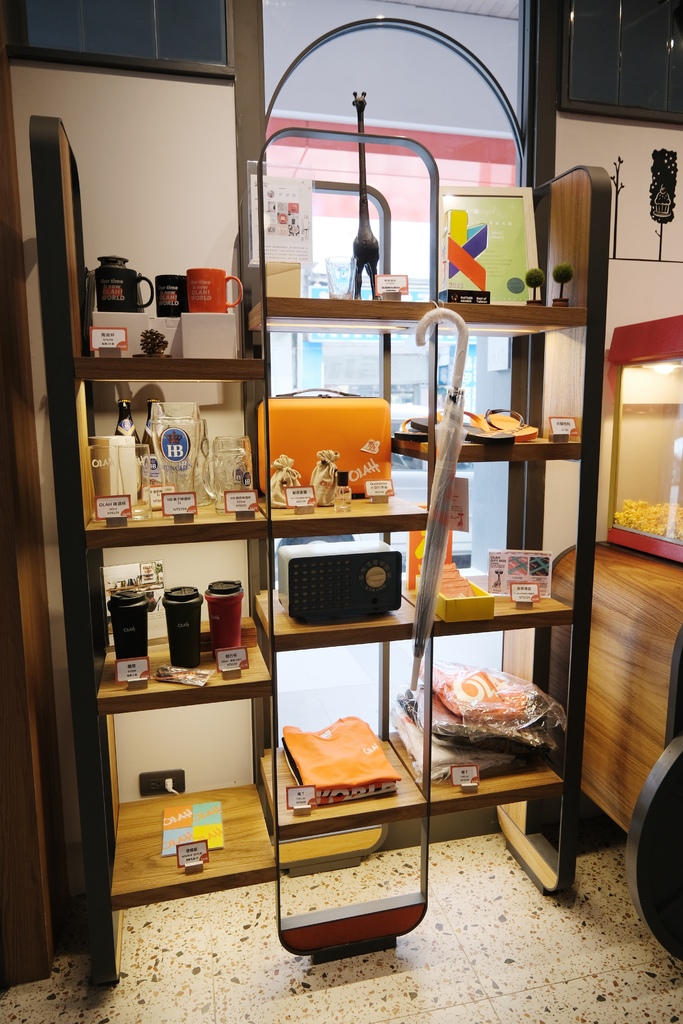 除了空間、音樂、飲品,OLAH悅樂旅店還在公共空間裡設計了一個選物角落,將旅店的風格延伸為生活提案。