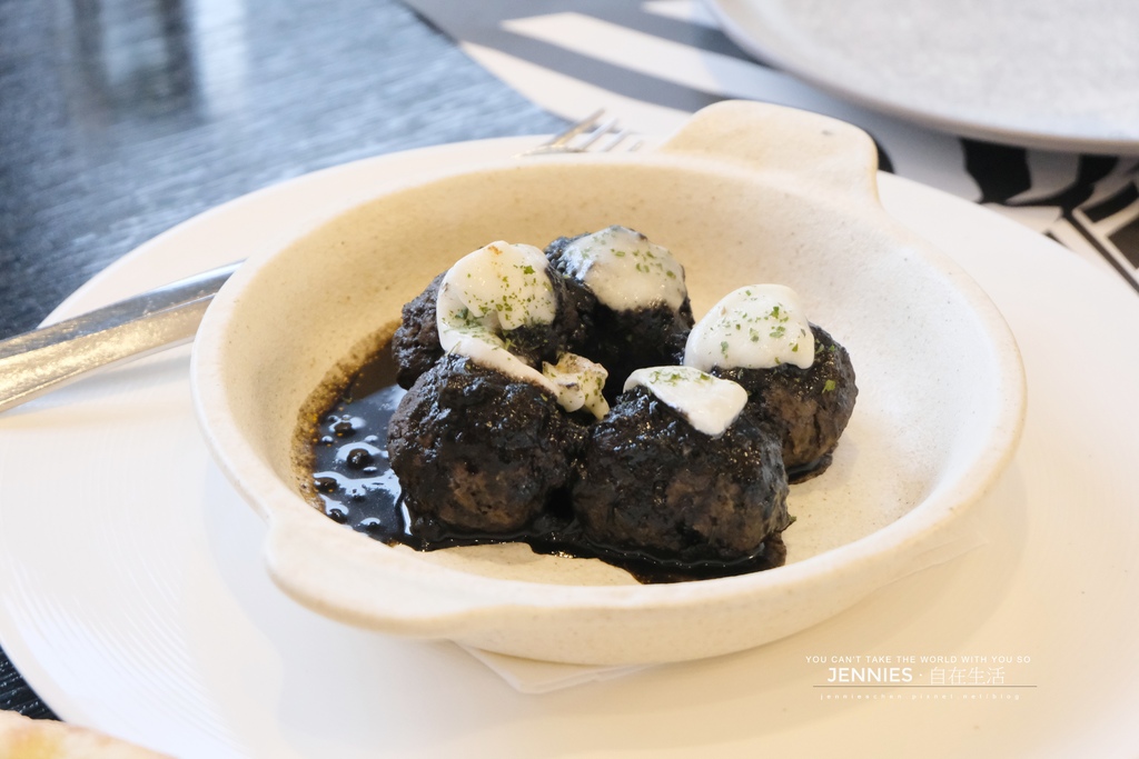 牛絞肉做成的丸子口感相當特別,搭配墨魚醬汁與水牛芝士。每一口都像是走進暗夜裡的義大利廚房被香氣擁抱著。這道感覺也很適合搭配啤酒,肉香強烈,吃進去又滿是溫柔的餘香。