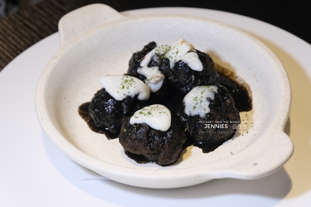 中午看菜單時猶豫過的黑色牛肉丸,晚上它就出現在餐桌上了。這道很受歡迎喔!是店內招牌。