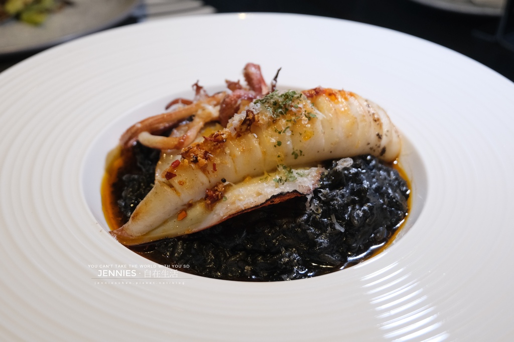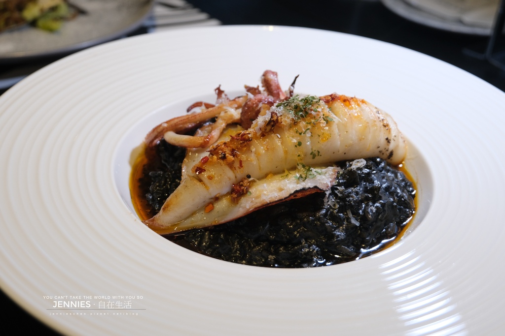 墨魚汁與番茄沙司交融出濃黑光澤的海洋氣息,小卷鮮嫩而富有咬感,橄欖油與蒜末為整道菜增添馥郁辛香,如威尼斯運河夜晚的神秘氣息,好喜歡這一道!