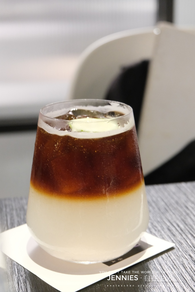 這杯西西里咖啡以濃縮義式espresso為基底注入新鮮檸檬汁、糖漿與氣泡冰水打造出如地中海日光下的清爽層次。杯中上層是深邃的黑咖啡,下層則是檸檬氣泡水,兩者交會呈現漸層,視覺上感覺很像是一道陽光從義大利西西里島的山脈灑落到海面。