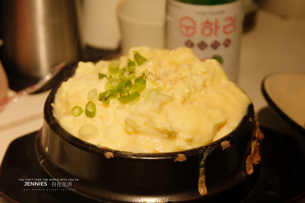 韓式蒸蛋剛上桌非常燙口,吃的時候要多注意。這道吃起來蓬鬆綿軟像雲朵一般,與中式蒸蛋不同,韓式蒸蛋就是要這種澎澎的感覺,熱氣逼出的小氣泡讓蛋體膨脹成圓頂狀,輕輕挖一口,吃起來像綿花一樣輕柔,帶著淡雅的湯汁,是中場休息最好的轉換。