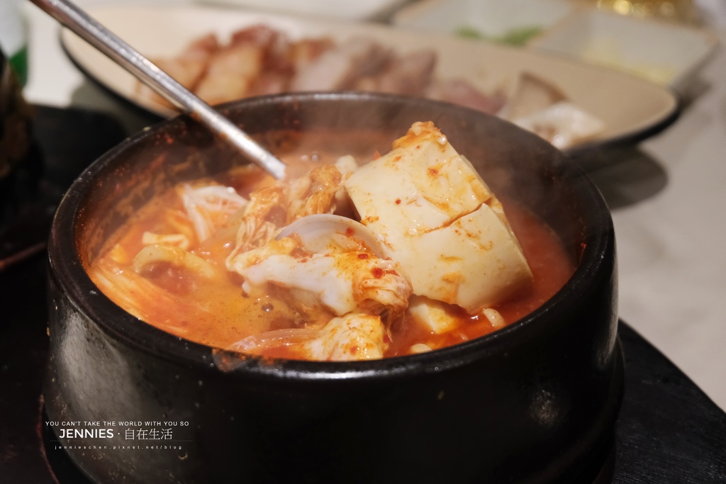 海陸豆腐鍋,鹹淡適中不會死鹹,裡面有滿滿的配料,一口燒肉再一口熱熱的豆腐湯,今天實在太滿足啦!