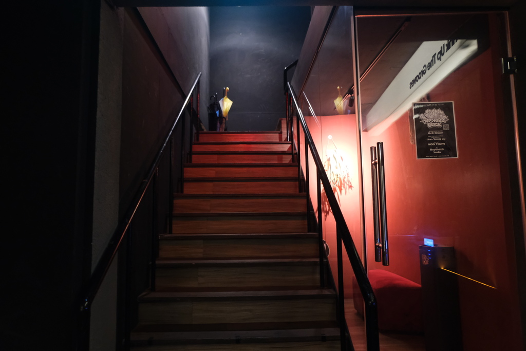 當我找到那個低調的「秘密開關」並輕按,門便自動開啟,真是有趣!從入口的黑膠唱片牆找到按鈕才能開啟通往地下室的門,走入其中宛如穿越至一處隱秘酒吧。