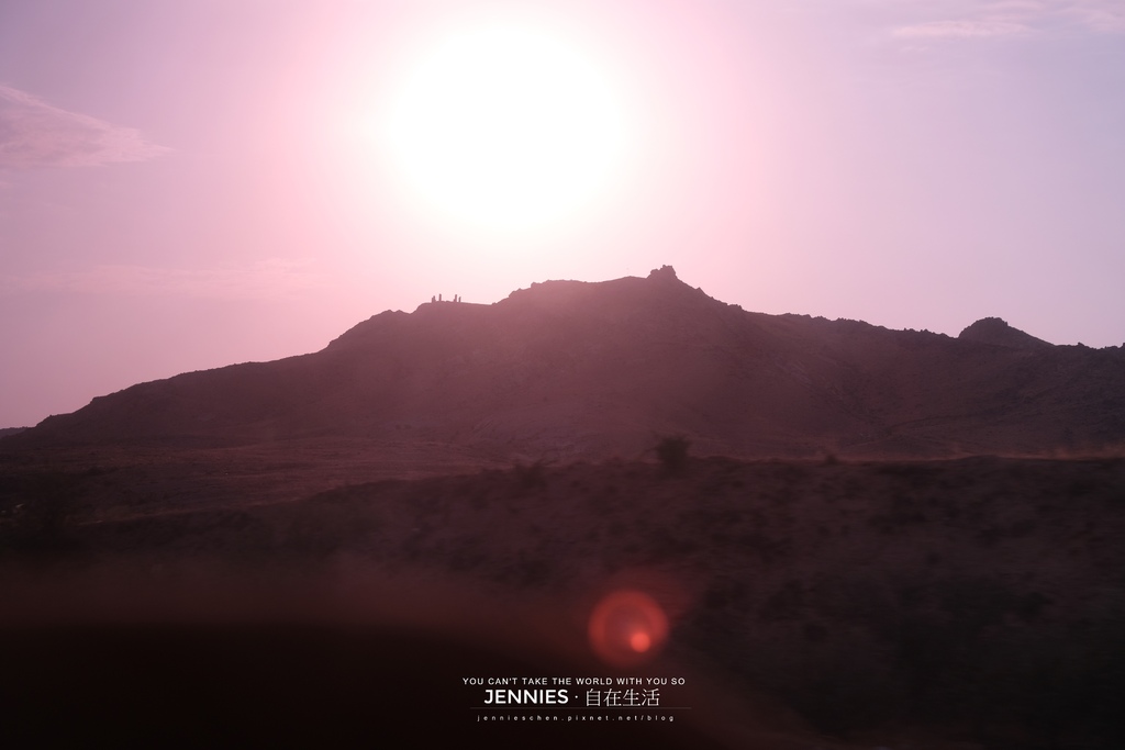 難怪進入這個景區總覺得一切很有沙漠感,房間地板踩起來有沙沙感覺,可能是塵土太多。我們入住的飯店電梯不大,要分好幾批才上樓,房間也偏小,附有陽台可以看到戶外風景。