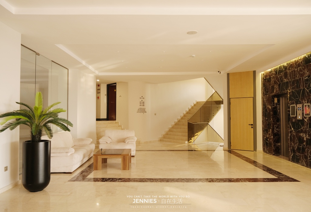 大廳設計簡潔,留白的空間給人乾淨的視覺效果,讓人進入這個空間感受到平靜,整體不壓迫。