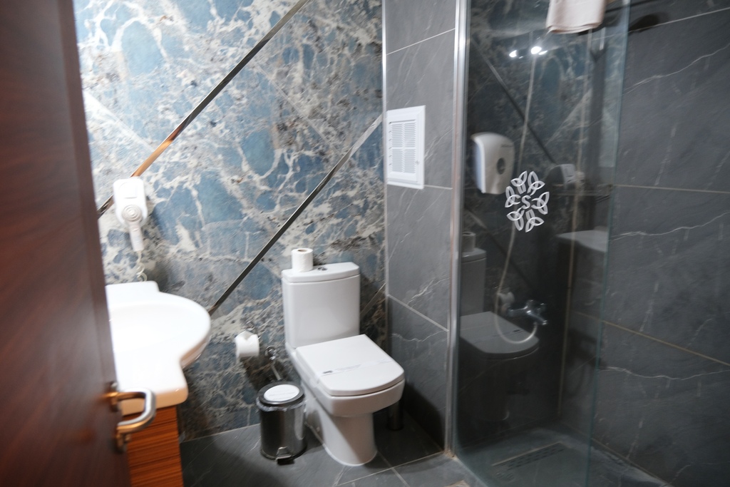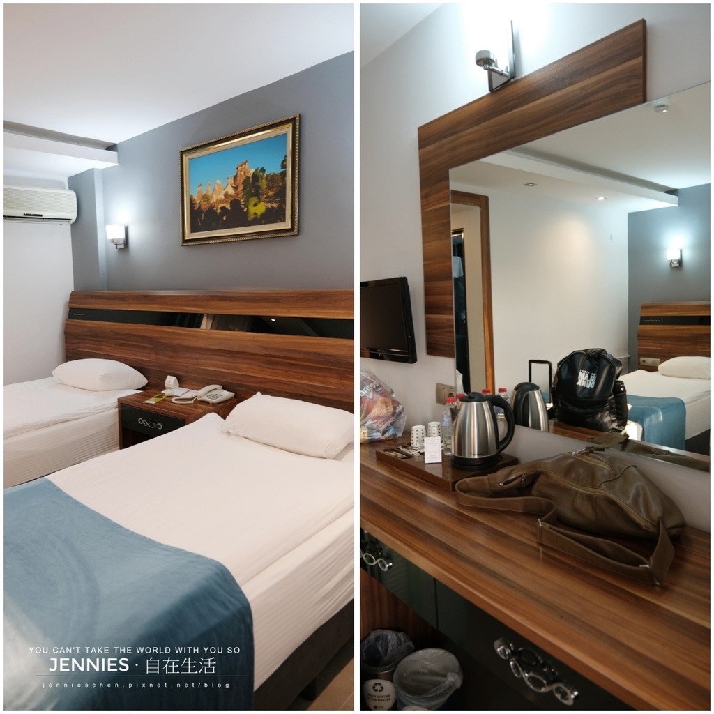 如果真要挑剔住的品質還真挑剔不完,出來玩也就標準放低一點,隨性一點吧!如果滿分十分住宿我打五分,餐食部分三分。在當地這樣的飯店應該算不錯,土耳其人多半長的高大壯碩,但是淋浴的空間真的非常窄跟擠讓我有壓迫感,而毛巾架設置的位置都很高,對於嬌小的我要墊腳才拿得到,建議還是帶自己習慣的洗沐用品,國外的飯店我一律都用不習慣。其他入住心得:無論風格多麼亮眼,土耳其飯店仍有一些「文化差異」讓人啼笑皆非: