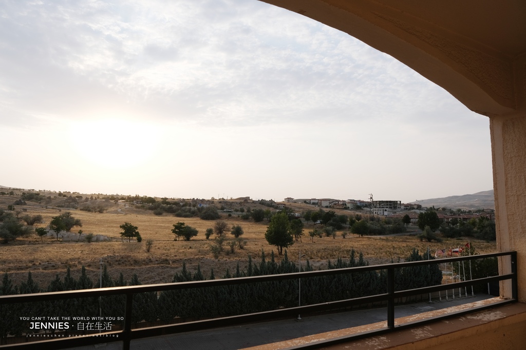 房間的風景畫就是以卡帕多奇亞的風景來作為佈置,卡帕多奇亞意指「駿馬的故鄉」,這個地區以其獨特的火山岩地貌和熱氣球體驗聞名於世。地名是波斯人所取,象徵著這裡曾是盛產駿馬之處!今天的房間簡單舒適,外面可以看到夕陽相當美!