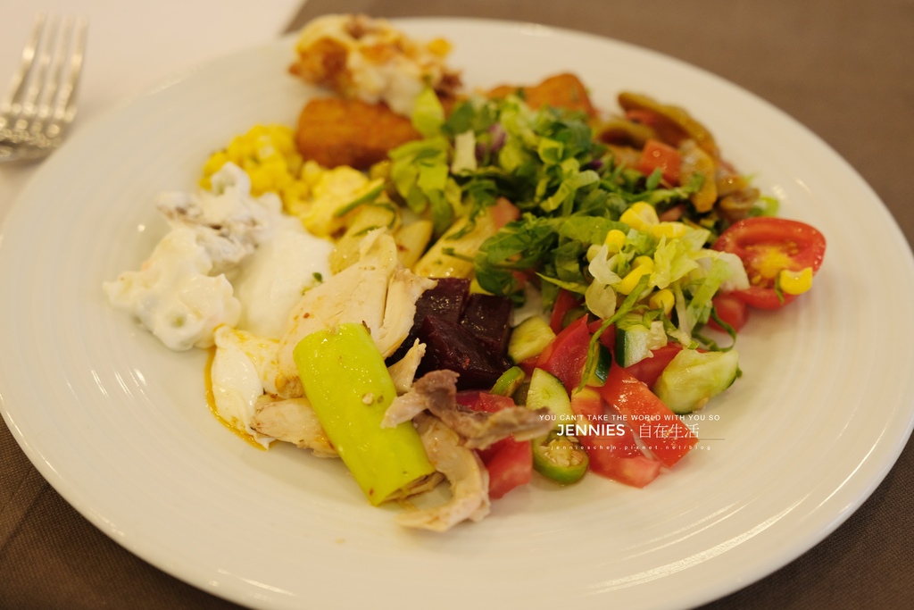 大概拿的就是這樣!!取餐檯上的料理看不出來到底是什麼?有各式的優格、沙拉還有說不出來的食材😂