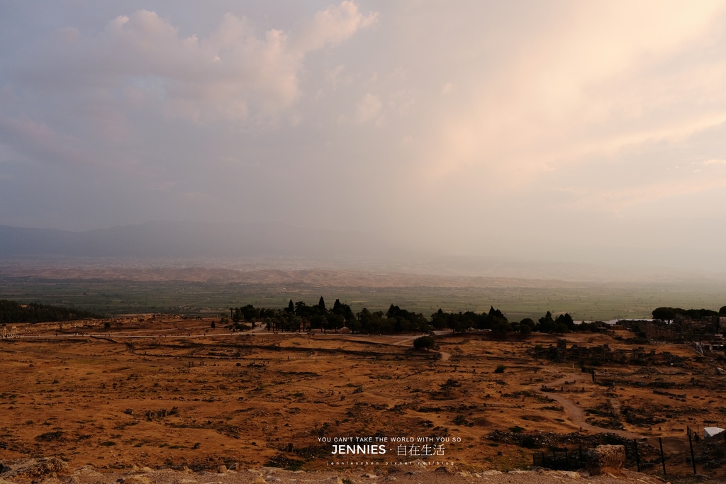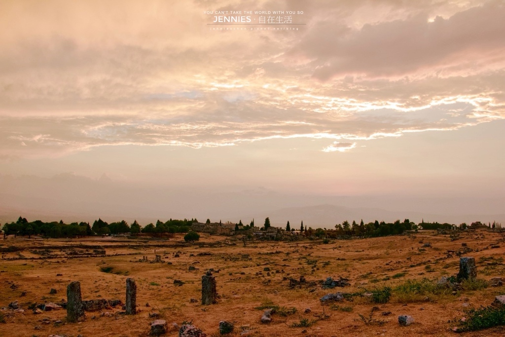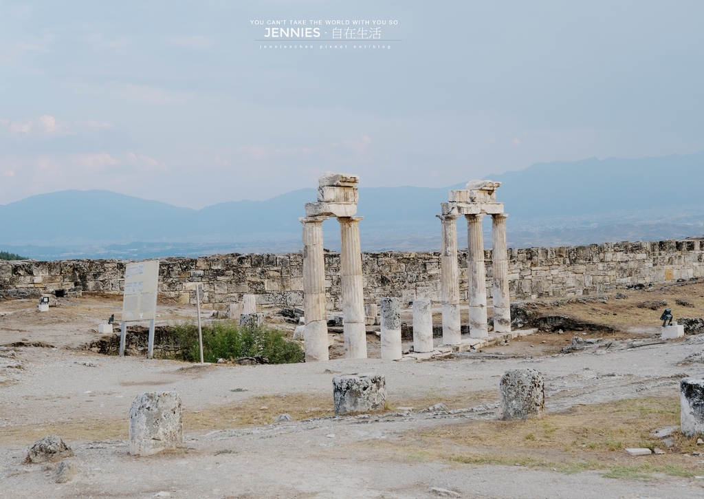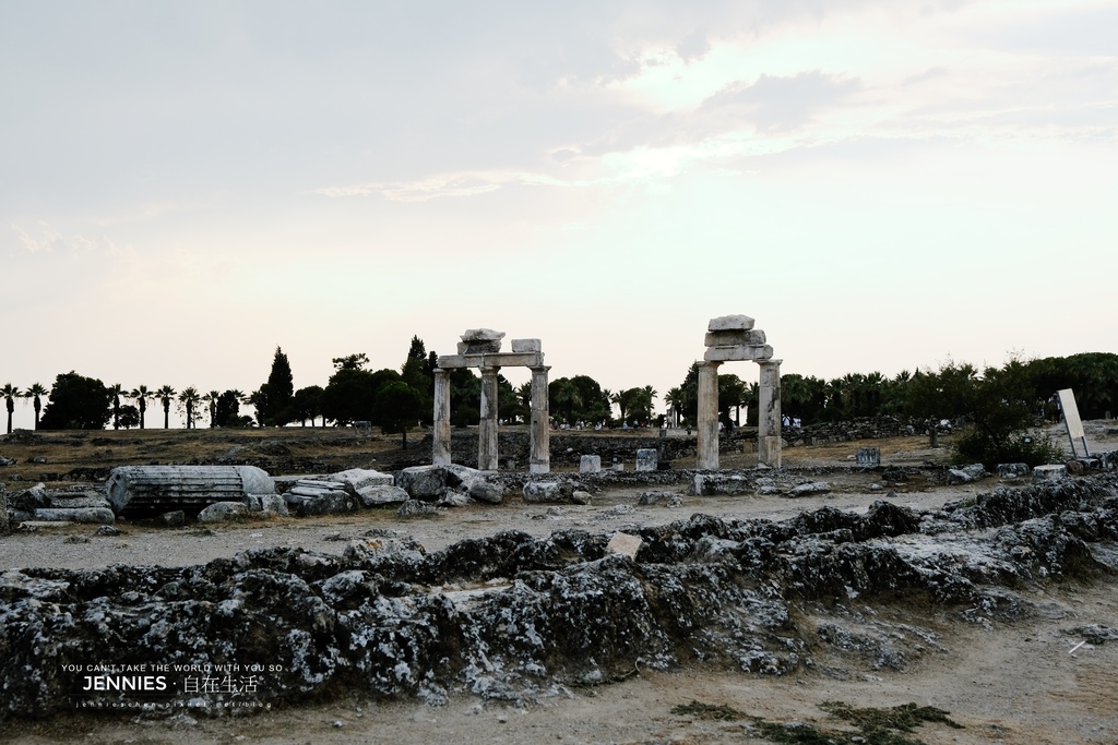 穿過南拜占庭門,迎面而來的是希拉波利斯古城遺跡。傍晚的光斜照在石柱之間,金色的餘暉替這座千年古城披上一層柔和的濾鏡。