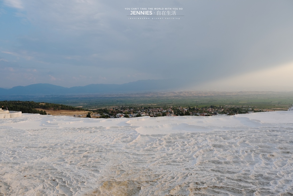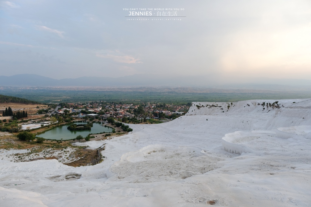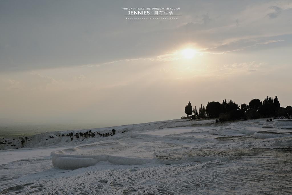 走出希拉波利斯古城,迎面而來的是那片傳說中的雪白世界-棉花堡。一開始我真的沒有心思好好欣賞這片美景!因為實在人太多!太多人!人太多了!!反而是回來後靜靜的看著這張照片才覺得怦然心動!