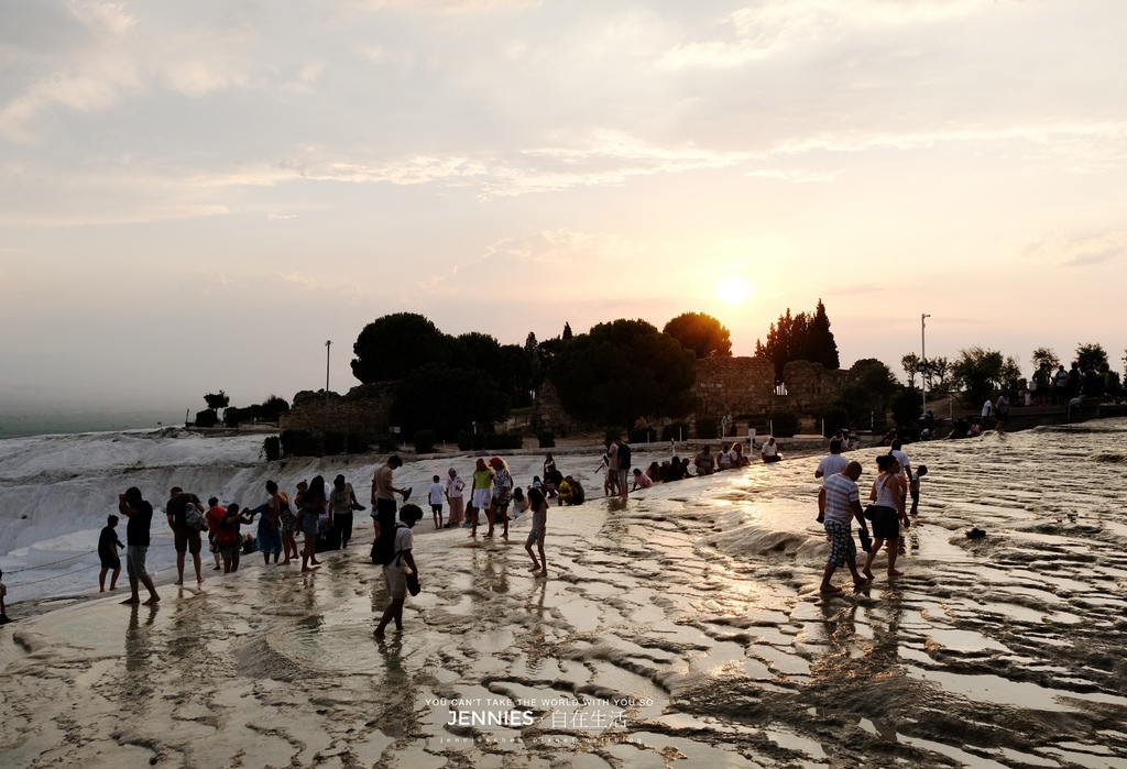 我們脫下鞋赤腳踩在微溫的石灰地面上。溫泉水緩緩流過腳踝。旅途的疲憊及長途的顛簸在這一刻都被洗去,只剩下純粹的感動。