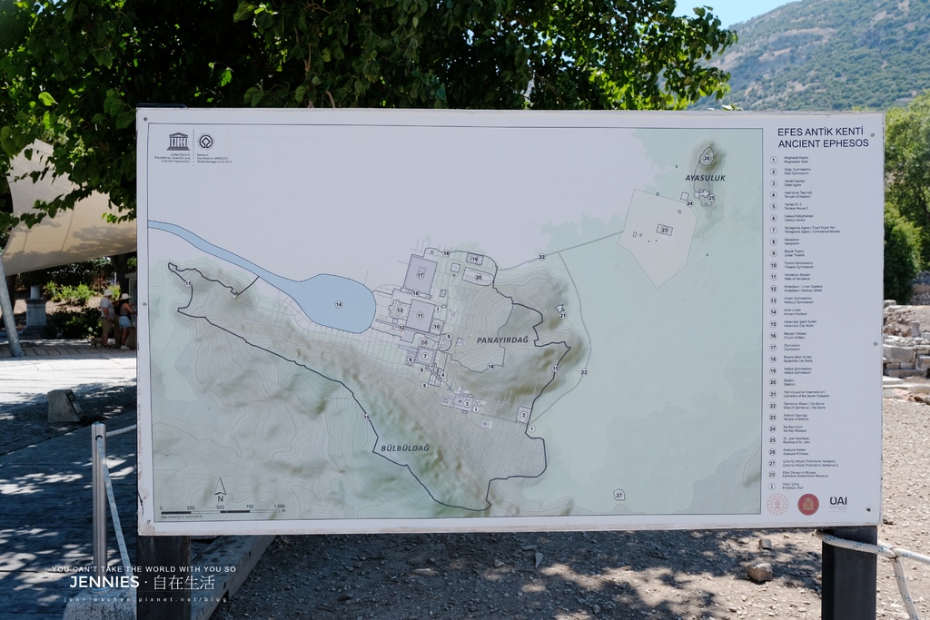 4.周邊與外圍區域20.Gymnasium of Vedius(維迪烏斯體育館)→用於教育與體育訓練。22.Harbor Baths(港口浴場)→給外地旅人與船員使用的大型公共浴場。23.Church of St. John(聖約翰教堂)→位於遠處山丘 Ayasuluk 上,拜占庭時期建築。25.Temple of Artemis(阿爾忒彌斯神廟)→古代世界七大奇蹟之一,現僅存地基遺跡。