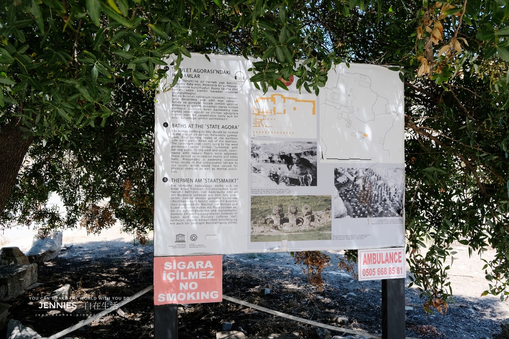 建於西元1世紀末至2世紀初緊鄰State Agora(行政廣場)這裡是城市政治活動的中心,所以浴場主要服務對象是官員、祭司、外交使節與社會精英。這種國家級浴場在羅馬帝國中非常罕見,象徵著艾菲索斯的政治地位與繁榮程度。從立牌的圖示與考古平面圖可以看出:浴場分為數個主要空間,每個房間都有特定功能與精密的溫控系統。外部庭院區用於摔角、舉重與遊戲,是先運動再入浴的典型羅馬生活習慣。忽然發現他們好注重洗澡這件事!!