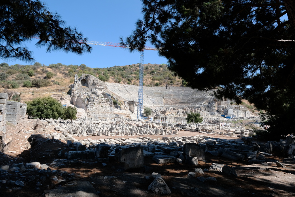 約西元前3世紀時期建立羅馬時期擴建完成。可容納人數約25,000人(相當於現代一座小型體育館!)最初為戲劇、音樂與宗教儀式所建;後期則用於政治演說與格鬥表演(包括角鬥士與動物戰);根據《聖經・使徒行傳》第19章記載,使徒保羅(Paul)曾在此地傳教,因宣講「人手造的神不是神」觸怒了製造銀製女神像的工匠,引發大規模暴動,當時的喧嘩聲在這座劇場內迴盪成為信仰與商業衝突的象徵場景。