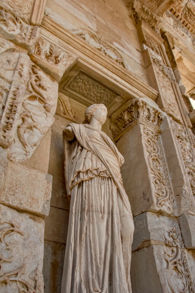 前方有四座雕像,代表塞爾蘇斯的四種美德—智慧(Sophia)、知識(Episteme)、洞察(Ennoia)、美德(Arete)。