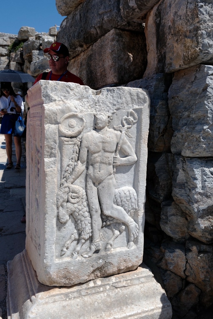 赫耳墨斯常被視為行動與思考之神連接凡間與神界,也是旅人與商人的守護者。對艾菲索斯這座以港口貿易為榮的城市來說,赫耳墨斯是最自然也是最具精神象徵的守護神之一。此外,赫耳墨斯也被稱作靈魂的導引者Psychopompos,據說他會在死者離開人世時引領靈魂前往冥界的入口。因此,這樣的雕刻往往也具有保護與引渡的象徵意味。