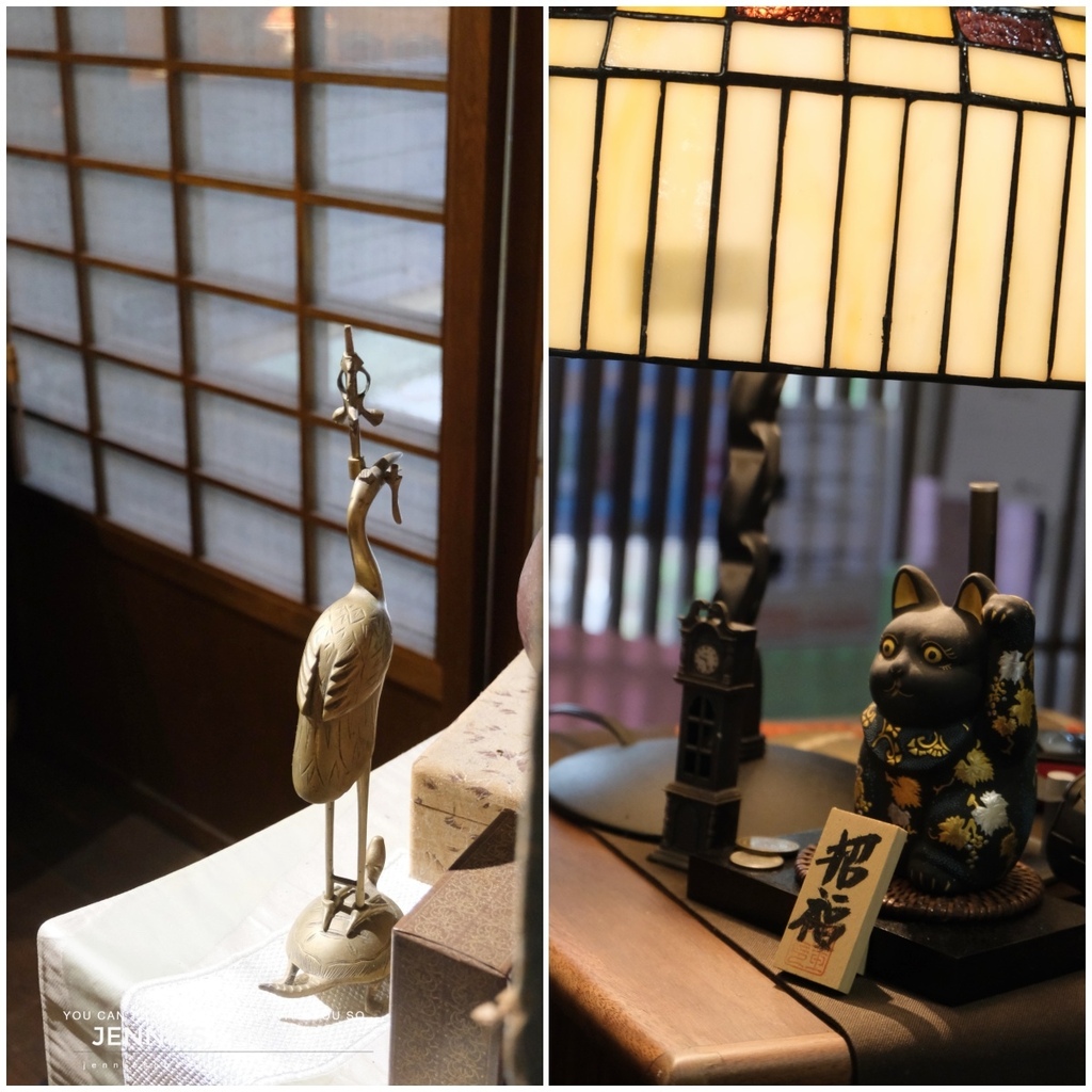 餐廳每個角落所收藏的古物帶著濃厚的日式氣息:木櫃、陶瓶、漆器、擺飾,每一樣物件都是一段故事。而每次跟不同的朋友到訪也有不同的心境。「美,往往隱身於時光的靜默之中。」 這些器物在歲月時間裡慢慢堆疊出屬於自己的樣貌。