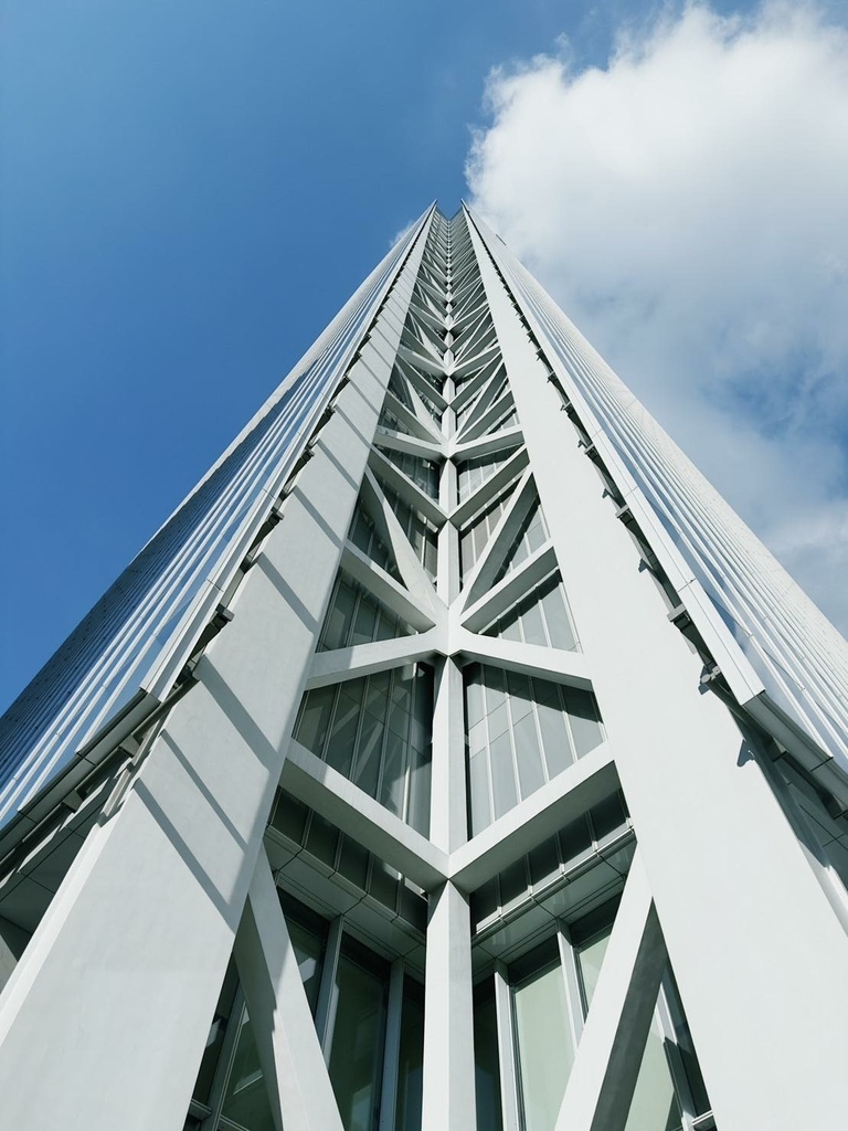 簡約而洗鍊的外觀映照著城市的律動與天空流光。作為企業總部也像是一座以建築語彙書寫的「城市光景集」。