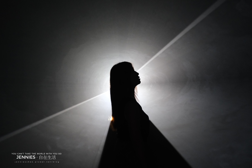 這個展明明就很好看!老公沒好氣的說下次看展要問過他。他可能覺得就只是幾道光在暗暗的空間。但是我跟兒子卻玩的不亦樂乎,還在光影中不斷扭動身體想要看看光影中的變化。